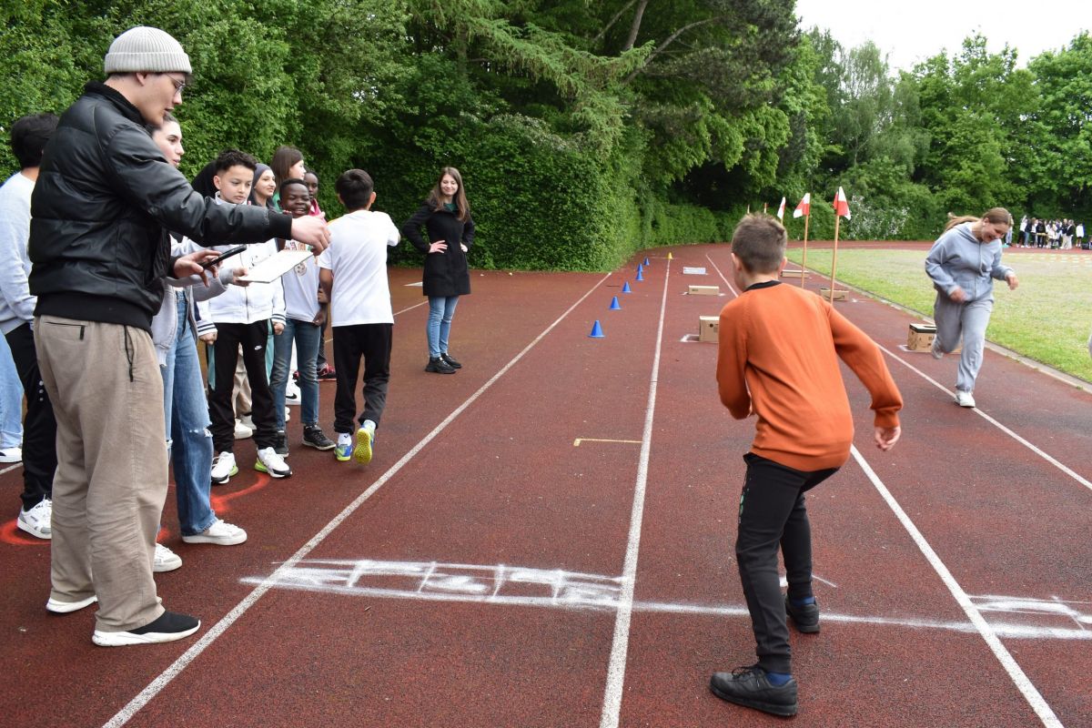Anstelle des normalen Sprints gab es einen kleinen Parkour: Zuerst über Bananenkisten springen, anschließend ging der Sprint weiter um ein Hütchen und zum Schluss noch im Slalom um einige Stangen. Die Disziplinen Springen und Werfen sind vom Aufbau her gleichgeblieben, nur wurden die Entfernungen nicht mehr nach Metern sondern nach Zonen gemessen. Das Punktesystem hat den Druck gesenkt und die Schüler*innen haben lockerer bei den Sprüngen oder Würfen gewirkt. Als letzte Disziplin gab es dann noch den Cross-Country-Lauf.