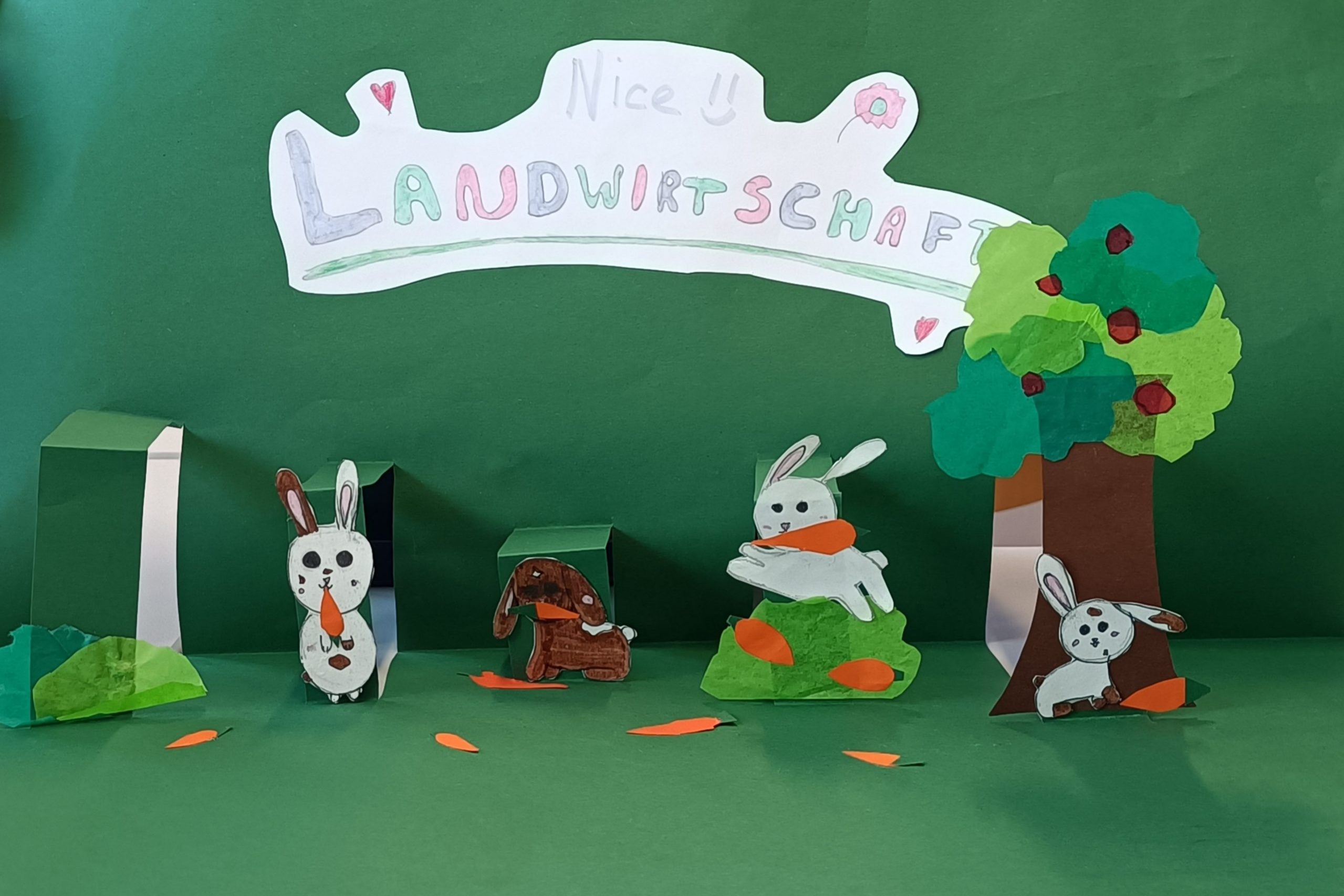 Im Rahmen des Projektes „Du und ich bei Hessens Bauern“ haben die Klassen 5FA, 5FB, die Mint Klasse 5GD und die 6GA eigene Kunstwerke entworfen, die sich mit dem Thema Landwirtschaft beschäftigen.