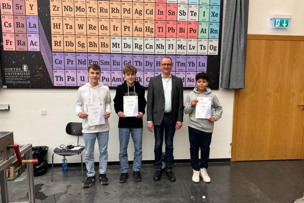 MINT- Schüler der OHS wurden am 6.12.23 in einer Feierstunde auf dem Campus Riedberg im Rahmen des Landeswettbewerbs Chemie – mach mit!“ ausgezeichnet