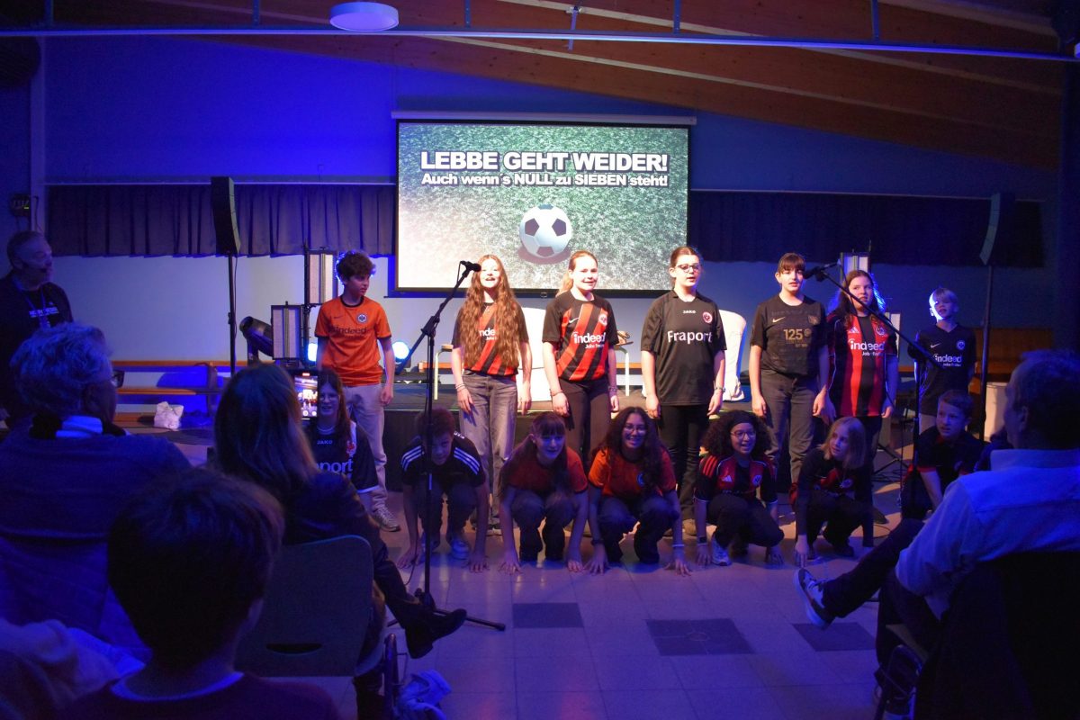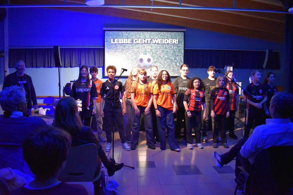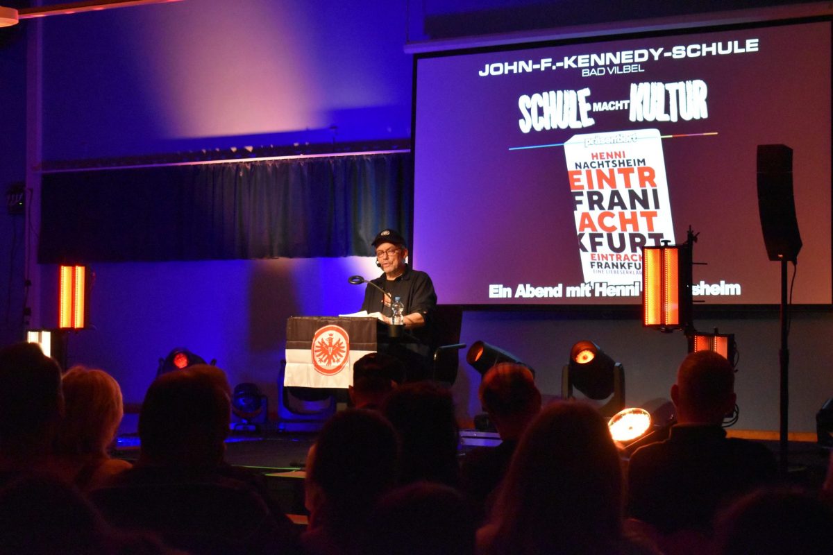 Seit Beginn des Schuljahres probte ein Großteil des „Hessentags-Chors“ der jetzigen Klassen 6Gd und 7Gd, die Juni das offizielle Hessentagslied in Bad Vilbel performten, den Song „Lebbe geht weider“, um diesen als Überraschung Henni Nachtsheim zu präsentieren. Nachtsheim – bekannt als Teil des Badesalz-Duos – war von der John-F-Kennedy-Schule Bad Vilbel eingeladen, um dort in der Mensa aus seinem neuen Buch „Eintracht Frankfurt – Eine Liebeserklärung“ zu lesen. Unter dem Motto „Kultur macht Schule“ hatten Schüler:innen der JFK mit Unterstützung ihrer Lehrkräfte den Abend organisiert.
