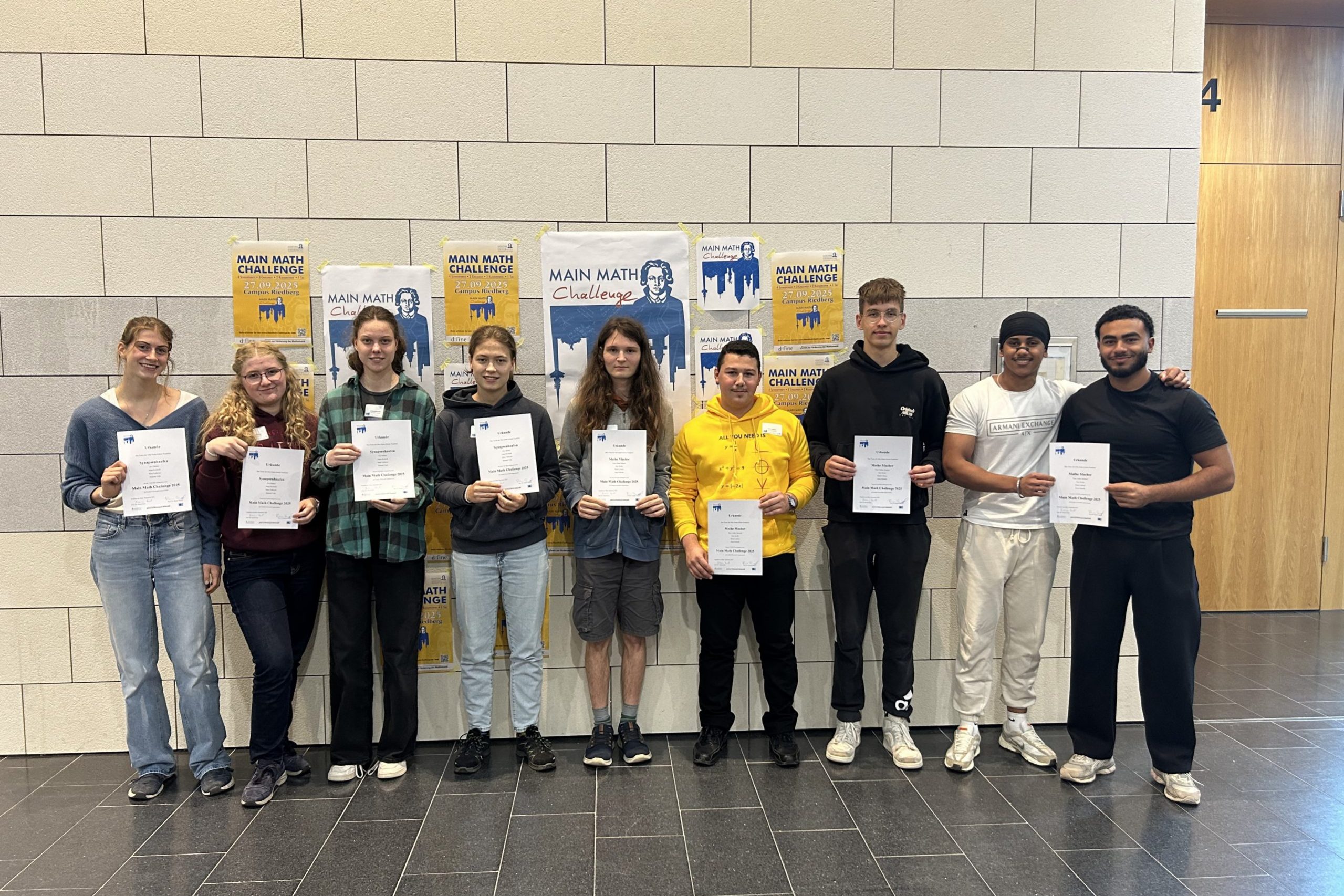 Unsere Schule hat zwei Teams (Q1D & Q3D) zur Main Math Challenge, am Samstag den 27.09.2025, an die Goethe-Universität geschickt. In drei verschiedenen Challenges mussten die insgesamt 49 Teams ihre mathematischen Fähigkeiten unter Beweis stellen.